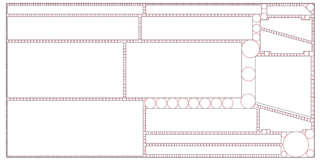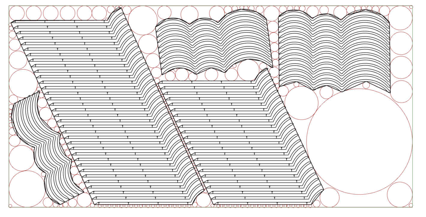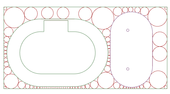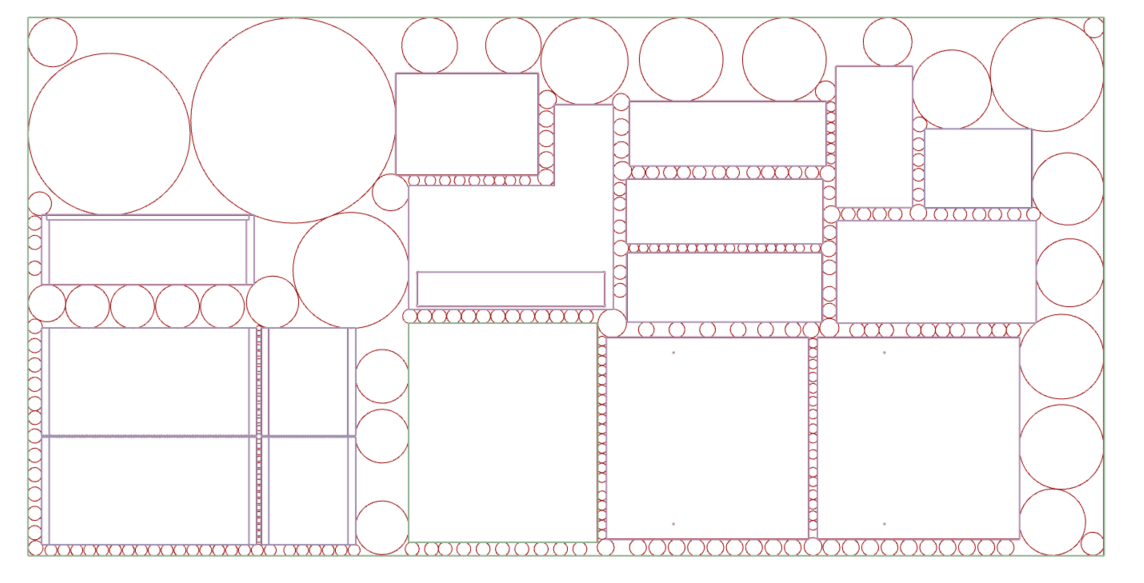 The end result is a set of circles that perfectly fit into the residual spaces of nested CNC sheets. Based on the dimensions of the circles, parts can be designed that can be nested as efficiently as possible into the residual spaces. An example an application is my project Cutting Out Waste. The script is available on my GitHub page.